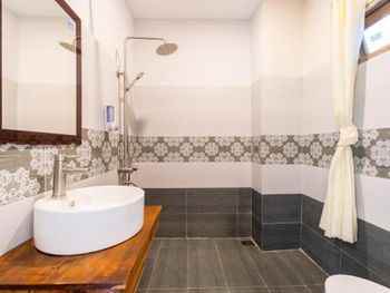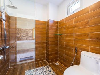 Место так себе,отсутствует трансфер,хотя в описании есть.номер дали не тот.тот что дали-вонял плесенью,попросили поменять.поменяли,но теперь дверь еле открывалась,ладно-остались.оказалось зря.из 7 дней 3 дня не убирались,а если убирались то плохо.жена купила тряпку моющие средства и сама вымыла полы.5 раз вода была чернющая.вода в ванной плохо уходила,ящерицы бегали по номеру.в холодильнике от прошлых жильцов осталось мясо,которое воняло как только открываешь холодильник.стены в трещинах и пятнах.в общем не советую.в районе кинг конга можно снять получше поудобнее и подешевле жилье,что мы и сделаем в следующий раз