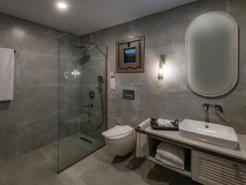 В распоряжении гостей Suum Bodrum Hotel & Beach - Adult Only — гостиная зона и собственная ванная комната с душем, бесплатными туалетно-косметическими принадлежностями и феном. Также среди удобств есть кондиционер, телевизор с плоским экраном со спутниковыми каналами и сейф. В собственной ванной комнате есть тапочки. Гостям Suum Bodrum Hotel & Beach - Adult Only предоставляются постельное белье и полотенца.
