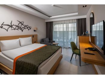Это первый отель в турции, где нам абсалютно всё понравилось. Обычно 5 звезд еле тянут на 4 звезды. Но этот отель заслужил все 5 звезд от души. В этом отеле всё налажено, начиная с зоны ресепшна и заканчивая обслуживанием везде. В отеле всё есть для комфортного пребывания семьей. Море рукой подать, бассейн огромный, лежаков хватает на всех, всё чисто. Официанты даже на пляже следят за чистотой. Молодцы! Держите марку, а мы еще вернемся с удовольствием! Желаем вашему отелю процветания и много благодарных посетителей?