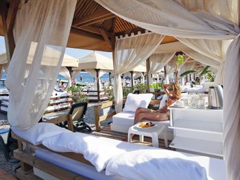 Запах в туалете при баре у пляжа. А так же маленький бассейн, в котором очень сильно нагревается вода. Лежаки приходится занимать с 6 утра, чтобы был выбор.