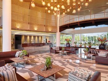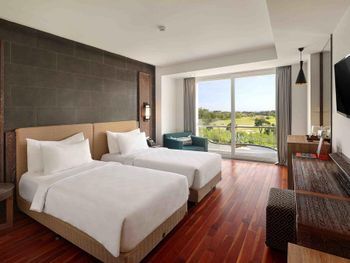 Номер с большим балконом на 5 этаже -вид потрясающий!!! на гольф-поле, бассейны и лаундж зоны отеля ! Вкусный шведский стол, территория ухоженная , красивая , сам номер большой , чистый , приятно пахнет , кровать шикарная , все есть для комфорта ! Персонал приветливый , улыбчивый , территория где находится отель далековато до центра где магазины , варунги , но она закрытая, очень живописная дорога к отелю и нет местных , нет шума , суеты , грязи и немного далеко до пляжа дримленд, но на пляж, до парка Геруды и до гольф-отеля кому поиграть в гольф есть бесплатный шатл, один раз съездили на пляж на шатле (у нас получился персональный автомобиль на двоих ) отлично , вернулись сами не торопясь пешком , вполне нормально, брали скутер в отеле катались по пляжам , очень понравился пляж ньянг ньянг , волны офигенные и виды , купаться можно , но аккуратно и кто не боится волн , обязательно встретить закат на пляже дримленд! Огонь атмосфера (наблюдать за серферами) и красивые закаты ! Отдых был супер , очень рекомендую кому важно отдохнуть от суеты ! Отель цена -качество и приятная атмосфера и главное персонал !