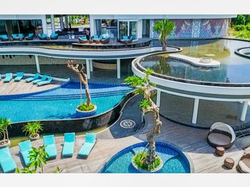 Отличное расположение отеля: подальше от шумных улиц и в зеленом районе, возле полей для гольфа. До всего очень быстро можно доехать на Gojek, grab или на арендованном байке. Пешком не реально, очень долго. Отель хоть и старый но вполне сойдет. В некоторых номерах видно сделан свежий ремонт. Кому это важно: сантехника хорошая. Огромная ванна ( семейный номер). Кровать и матрасы вполне годные, а подушки сильно мягкие, видимо уже изношены. Белье хорошее. Хорошие бассейны. Аншлага в них нет, даже когда хорошая заполняемость гостями… спорт зал скромный но вполне пойдет для поддержания формы:) завтраки норм, ужинали разок: дороговато, но по качеству норм.