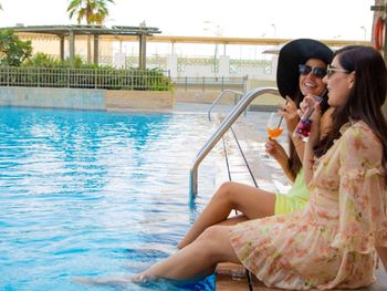 Тёплый бассейн . Но солнце только до 10-11.00 . Потом в нем холодно купаться (так как мы были в зимнее время - это не очень круто ) .