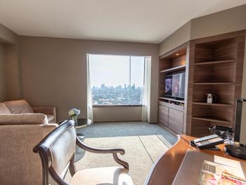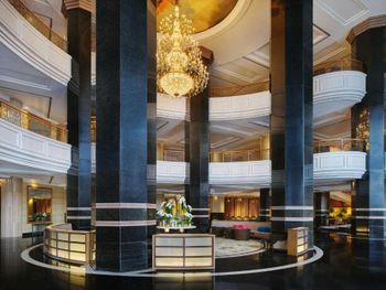 Очень шикарное лобби, скромные номера, бассейн без вида, рестораны в отеле крайне слабые, нет не одного с панорамой только в лобби, рядом ничего интересного, но есть метро за 20 минут можно доехать до центра