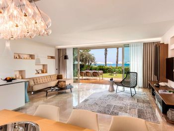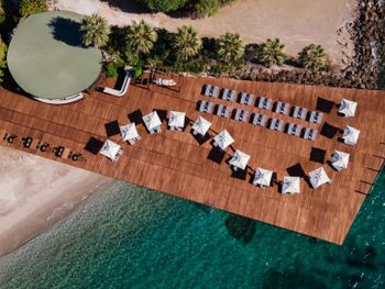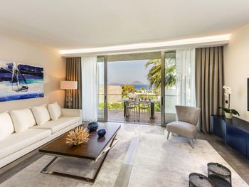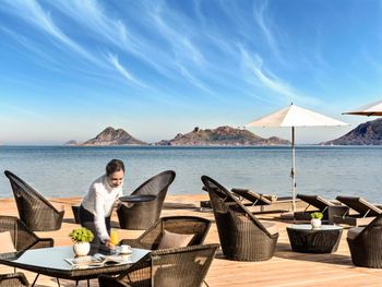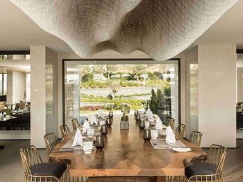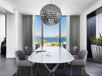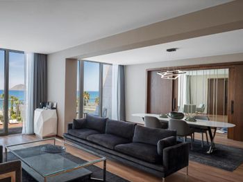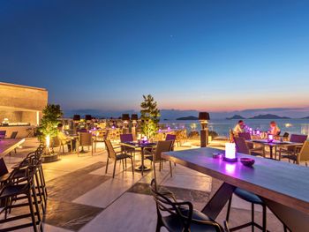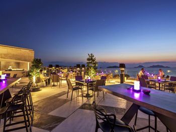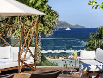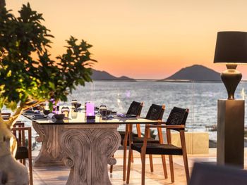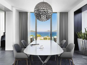Отель расположен в уединенном месте у небольшой бухты, прекрасно оборудованный пляж с баром и причалом, чистое море песчаный берег, услужливый персонал, комфортные номера, стильный интерьер, здание отеля очень хорошо и стильно спроектировано в стиле модерн- стекло и камень, очень хороший СПА комплекс, приятная атмосфера для уединённого отдыха и релаксации