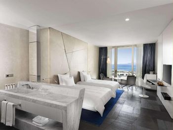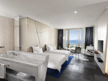 Современный просторный номер с красивым видом на море. Ежедневная уборка номера