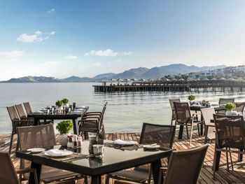 В ресторане отеля Swissotel Bodrum Beach подают блюда азиатской и средиземноморской кухни по меню. В снэк-баре Beachside в течение дня сервируют разнообразные средиземноморские блюда. В баре можно заказать различные напитки.