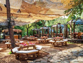 В бассейне было очень много людей, все лежаки заняты, вода прохладная. Сломавшийся замок в номер чинили час. Цены в ресторанах очень высокие, сильно выше, чем в городе рядом.