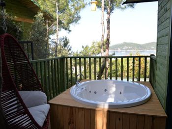 Отношение персонала прям совсем не то, даже съехали из-за этого. Если вы не турок, то будете не в приоритете и персонал особо не волнует как это негативно для других туристов. На наше замечание по этому поводу - просто "ну извините", без попыток как-то сгладить, хотя мы были предельно вежливы.. Бунгало с ванной на террасе - просто деревянный домик без изысков, явно не соответствует своей цене. За цену ниже нашли на порядок более комфортное размещение прямо в городке, в тишине. Жутко шумно вечером от города внизу, закрыть окна невозможно, т.к. нет кондера.. Отсутствие кондера в номере на горе под солнцем в Турции-нонсенс, не на том экономите!