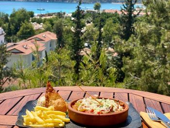 По утрам в пляжном отеле Symbola Oludeniz сервируется завтрак «шведский стол». Кроме того, в отеле работает ресторан с обслуживанием по меню. В течение дня в баре можно заказать освежающие напитки и закуски.
