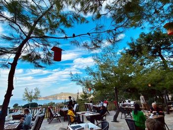Зеленая территория, красивая и удобная веранда ресторана