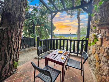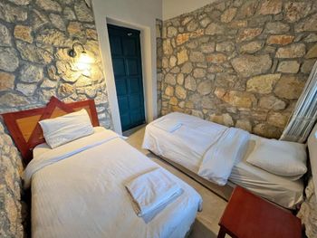 Бронировали сами, брали только завтраки, мои рекомендации - если хочется сэкономить и при этом вкусно питаться - берите с ужином. В Олюденизе нет ресторанов высокой кухни, цены высокие. В этом ресторане цены тоже зашкаливают, но при бронировании и пакетом цена более чем приличная. Ужинали тут пару раз за две недели - очень вкусно. Отель расположен выше других, на скале, домов мало, мы жили в каменном, с двумя комнатами, стены толстые, окна со ставнями. По вечерам пили чай на террасе при свечах. Вид на море и закаты самые лучшие в Олюденизе. Кровати удобные, высыпались. Бонусом была целая стая молодых котяр, они нас встречали с радостью, у каждого из нас появились любимцы, хотя мы стопроцентные собачники. Если решимся ещё раз поехать лазить по горам, купаться в голубой лагуне, и получать полное расслабление - только сюда.