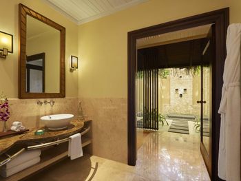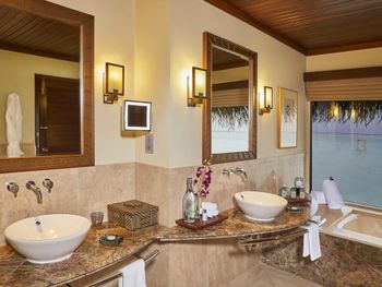 Просторные виллы оформлены в теплых тонах и обставлены изысканной мебелью из дерева. Из помещений можно выйти на собственную террасу для загара и балкон. К числу удобств повышенного комфорта относятся кофемашина Nespresso и док-станция для iPod. Ванная комната укомплектована тропическим душем и роскошными туалетно-косметическими принадлежностями. В номерах предоставляются тапочки и набор для чистки зубов. Номера оснащены электрическим чайником и телевизором с китайскими кабельными каналами.