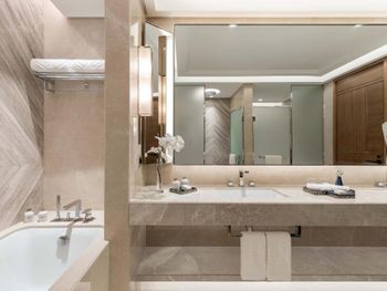 Красивый отель. Комфортный номер, просторный, с огромной ванной комнатой и отдельной гардеробной. Персонал работает четко, хороший рум-сервис.