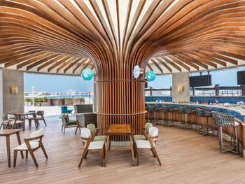 Очень дорогие цены на все и это не оправданно. Я жил по системе full board, но включена только вода. Чай за ужином из пакетика 12€. Это самый дорогой чай из пакетика, который я пил! Пиво у бассейна 15€. Это ужасно!!! Не все можно измерить деньгами, но тут пытаются забрать у вас максимально, даже тогда, когда питание полностью оплачено! Территория очень маленькая и без зелени - гулять не где. Море грязное. На пляже я встретил стекло под ногами. Лежаков не хватает. Ужасный отель, не советую сюда приезжать, если вы не хотите попробовать чай из пакетика за 12 евро… до этого жил в отеле рядом, там все включено и цена не сильно выше, там супер!!!