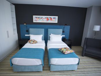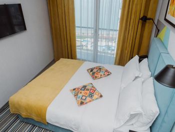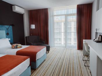 Из интересных моменты - когда вернулись с завтрака, не смогли попасть в номер, карточке были заблокирована. На рецепшен сказать, что это из-за того, что у нас в это день чек аут (в 11, так-то, не в 9) и продлили действие одного из пропусков....почему сразу б это было не сделать, что не заставлять нас кататься в лифте на 22 этаже и обратно и нервничать?..
