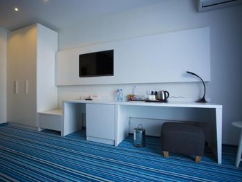 1. отвратительная шумоизоляция, телевизор у соседей слышно, лифт слышно, открытие балконных дверей слышно 2. ручка дверцы балконной держалась на соплях 3. очень дорогие и очень не вкусный ресторан при отеле 3. нет заявленных индивидуальных принадлежностей в ванне, только налитое в дозатор мыло. так себе 4. не встретил заказанный трансфер из отеля на вокзале. прождали 15 минут, звонили в отель сначала номер был недоступен, по другому номеру нам сказали, что вообще кто вы такие и что вам нужно. добрались в 12 часов вечера сами. в отеле еще за это получили выговор и массу возмущений. оказывается такси просто опаздывало и мы неблагодарные такие, не дождались. а предупредить не судьба? 5. без предупреждения и оповещения изменили пароль от вайфая, пришлось с 22 этажа спускаться вниз 6. нужно быть очень внимательным при бронировании вида, а то получите на развалины, гаражи и трущебы 7. с мужем путешествовали в медовый месяц по Грузии и это был единственный отель, который никак с этим событием не поздравил.