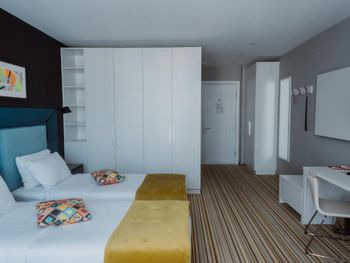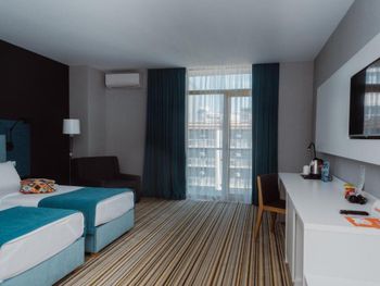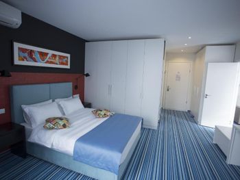 Апарт-отель на последних этажах высотного жилого здания. Номер с видом на море соответствовал ожиданиям. Хорошее расположение рядом с морем, магазинами,ресторанами.