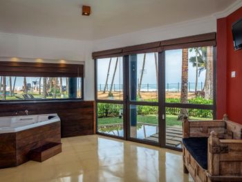 Мы с мужем приехали в отель рано утром, уставшие, но не смотря на это, нас быстро зарегистрировали и поселили в номер. Огромное спасибо сотруднице отеля и очень красивой девушке NISHADHI , которая максимально быстро нас зарегистрировала и заселила в самый лучший номер с великолепным видом на океан. По всем вопросам во время отдыха (отдыхали три недели в этом отеле) нам помогала эта прекрасная и максимально клиентоориентированная сотрудница отеля NISHADHI, я была поражена до глубины души такой заботой и клиентах. Сам отель красивый, много места для отдыха в различных зонах, ухоженная территория, цветы, деревья, фонтаны, большой и чистый бассейн с большим количеством лежаков, по вечерам живая музыка. Живность на территории отеля присутствовала в виде небольших варанов, были белые цапли и умопомрачительные пальмовые белки. Кормить животных на территории отеля запрещено (мы соблюдали это правило, как другие). Мы бронировали номер на завтраках, но нам от отеля подарили три ужина (спасибо NISHADHI, которая нам напоминала про бесплатные ужины, чтобы мы их не пропустили). Завтраки разнообразные и очень вкусные, выпечка божественная, ужины также были вкусные и разнообразные, попробовала еще раз блюда с карри, очень вкусно, но очень остро конечно. Особенно хочу отметить и порекомендовать обязательно посетить аюрведический центр на территории отеля, я знакома с аюрведическим массажем и была рада, что не нужно никуда далеко ходить, все здесь на территории, рекомендую все виды аюрведического массажа, которые есть в брошюре, которую можно взять в центре.