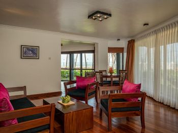 Мы с мужем приехали в отель рано утром, уставшие, но не смотря на это, нас быстро зарегистрировали и поселили в номер. Огромное спасибо сотруднице отеля и очень красивой девушке NISHADHI , которая максимально быстро нас зарегистрировала и заселила в самый лучший номер с великолепным видом на океан. По всем вопросам во время отдыха (отдыхали три недели в этом отеле) нам помогала эта прекрасная и максимально клиентоориентированная сотрудница отеля NISHADHI, я была поражена до глубины души такой заботой и клиентах. Сам отель красивый, много места для отдыха в различных зонах, ухоженная территория, цветы, деревья, фонтаны, большой и чистый бассейн с большим количеством лежаков, по вечерам живая музыка. Живность на территории отеля присутствовала в виде небольших варанов, были белые цапли и умопомрачительные пальмовые белки. Кормить животных на территории отеля запрещено (мы соблюдали это правило, как другие). Мы бронировали номер на завтраках, но нам от отеля подарили три ужина (спасибо NISHADHI, которая нам напоминала про бесплатные ужины, чтобы мы их не пропустили). Завтраки разнообразные и очень вкусные, выпечка божественная, ужины также были вкусные и разнообразные, попробовала еще раз блюда с карри, очень вкусно, но очень остро конечно. Особенно хочу отметить и порекомендовать обязательно посетить аюрведический центр на территории отеля, я знакома с аюрведическим массажем и была рада, что не нужно никуда далеко ходить, все здесь на территории, рекомендую все виды аюрведического массажа, которые есть в брошюре, которую можно взять в центре. По поводу экскурсий: рекомендую местного русско-язычного гида Даниэль +94 77 992 49 05, он всегда на связи, пунктуальный, предложит максимально удобные маршруты по хорошим ценам. Друзья, мы с мужем провели прекрасные три недели в этом отеле. Это наше четвертое посещение этой прекрасной страны и мы надеемся приехать на Шри Ланку еще раз. Надеюсь, что мое краткое описание было полезным.