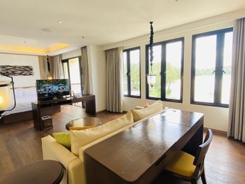 1) Больше всего нас расстроил завтрак. он испортил все впечатление. сыр был покрыт желтой плесенью. яичница с привкусом тухлым попросили рис вегетарианский. принесли с палками анчоусов , которые не прожевать. панкейки и вафли как будто с прошлого года. народу было мало , и видимо они решили , что мы итак съедим это ) ну что ж. спасибо. зачем вы устраиваете показуху и наливаете шампанское ? лучше бы три кусочка нормального сыра положили и свежих овощей 2) так как отель расположен далеко от ресторанов , то вам придётся есть в отеле , что делали и мы. заказывали пиццу , десерты , какое то блюдо из курицы. лучше , чем завтрак , но нам пришлось выпить таблетки от тошноты , потому что нашим животам стало плохо. (я не привиреда, и ела в обычных забегаловках и все было хорошо ) 3) персонал не понимает , что надо сначала принести основное блюдо , а не десерт. 4) вы не искупаетесь в бассейне. там плавают вараны огромные ) они хозяева бассейна и Кайфушники. так что я плавала только в море. 5)доски в отеле гнилые. есть вероятность , что в какой то момент кто - то провалится 6) днем люди распрыскивали какое то вонючее средство около отеля. мы испугались. нас даже не предупредили. 7) пишут , что пляж частный. но по нему почему то катаются квадроциклы 8) спа закрыто ) отель лишь пускает пыль в глаза , когда вы приезжаете все вежливо забирают ваш багаж. и наливают разбавленный юпи сок 😂 персонала больше , чем отдыхающих. но смысла от персонала нет никакого. позор !!!