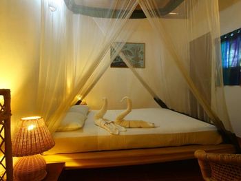 При заселении и оплате с нас взяли стоимость за стандарт. Когда мы обратили на это внимание, так как бронировали Делюкс, нас попросили доплатить. Но….. очень милый с виду молодой человек на ресепшн повёл нас в стандарт и упорно доказывал, что это Делюкс. В комнате: три кровати длиной Макс 180 см. (муж 2 метра ростом) под балдахинами и шторка, которая заменяет дверцу шкафа-всё!!!! Нет даже окон!!!!! Каменная коробка!!! в общем после 10 минут переговоров он отводит нас в Делюкс (мы бронировали номер с видом на море, это как минимум должен быть второй или третий этаж), но наш оказался на первом, ни о каком виде речь не идёт и !!!!!! начинает доказывать что это супер Делюкс и надо доплатить. Конечно же «идёт лесом» и в результате мы остаёмся в нашем номере. В двух словах о Делюкс: в туалете запах общественного туалета, течёт бочек, дохлых таракан кверху лапками)))) прелесть!!!! В комнате всё норм, но без кондиционера жить невозможно. Если его включить, дует прямо на кровать. Окон нет, но передняя стена панорамная, зашторенная. То есть заходишь в комнату, забыл зашторить дверь и вся твоя личная жизнь напоказ-номер выходит в 1 метре от бассейна, в 3 метрах от ресепшн и в 10 метрах от ресторана. Об остальном-мебель в ресторане и лежаки старые и обшарпанные. Завтрак ждали ровно 45 минут. Кто там писал про разнообразие? Омлет с сосиской, кофе чай сок. тосты с маслом и джемом. Спустя 45 минут принесли завтрак холодным и оказалось сосисок нет(((( Не удивлена-столько времени прошло ))))) Мне есть с чем сравнить - ни о какой 4 речь не идёт. Цена очень высокая. Вот честно хочется что-то хорошее написать, но нечего. Персонал услужливый? Сначала создаёт проблемы, потом их быстро решает? Очень неприятно, что гостей пытаются обмануть сразу как переступили порог.