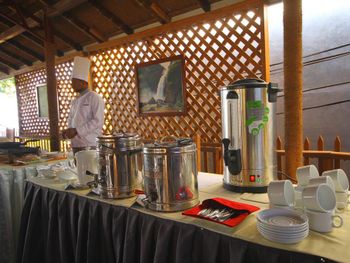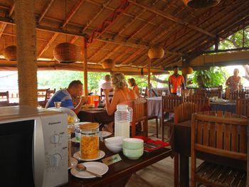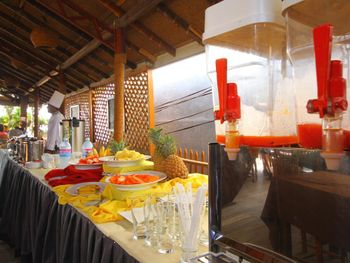 Отличные завтраки (шведский стол) - два вида карри, рис, макароны, сосиски или бекон, омлет, вкусные блинчики, хлопья, из фруктов папайя, арбуз, ананас, банан, чай, кофе, соки. И ещё куча кексов, в общем точно голодным не уйдёшь.