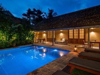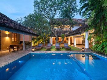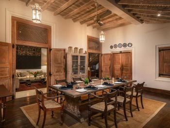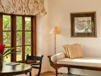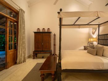 отель всего на 4 номера и очень высокого уровня, с красивым дизайном, качественным ремонтом, дорогим текстилем, с дорогими предметами интерьера и антикварной мебелью, при этом все современные удобства присутствовали, вилла высокого европейского уровня, что редкость для Индии и Шри-Ланки