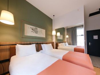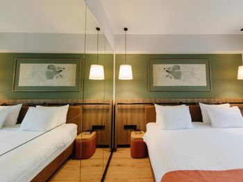 Современный, новый отель. Отличная ванная комната, на крыше уютный ресторан с панорамным видом на город. Приветливый персонал, хороший завтрак. Есть кофе машина в номере. А самый главный плюс - отель dog friendly. За это отдельная звездочка. Обязательно еще остановимся. Спасибо!