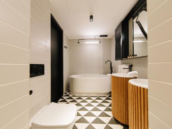 Очень просторно, хороший вид, два телевизора, в ванной комнате и душ, и ванна. Заселили за 30 секунд, чудесно!