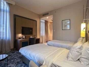 Рядом с отелем проходили митинги, это было шумно и немного напрягало с передвижением к отелю и из него. Но это не вина отеля. Просто это надо иметь в виду, что такое возможно в любое время, не зависимо от вашего собственного расписания и поэтому добираться к отелю и из него - может быть сложнее, чем вы рассчитывали изначально.