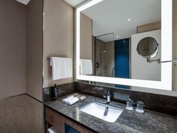 В номере не было халатов, мы позвонили на респешн и их быстро принесли. Через несколько часов после заселения обнаружили на абажуре напольной лампы чей-то носок ?. Переселяться мы уже были не готовы, но в тот же вечер сообщили об этом персоналу на ресешн. С утра мы через внутреннее приложение отеля заказали завтрак в номер (было около 10 утра), его готовили больше 40 минут, принесли только после нашего звонка на ресепшн. Завтрак стоил 55 лари и оказался полным разочарованием — он не соответствовал описанию, от вида тарелки со «свежими фруктами» стало откровенно грустно. Йогурт, круассан и кашу просто не принесли. После очередного звонка и вопроса «где все остальное», нам принесли круассаны и йогурт, про кашу сказали «её нет» (на стоимости её отсутствие никак не сказалось). На чек-ауте нас спросили, как мы оцениваем наше пребывание, мы честно сказали, что плохо из-за ситуации с носком и завтрака. В ответ услышали извинения и сожаление о том, что мы оставались всего на одну ночь и поэтому они уже ничем не могут исправить ситуацию и ничего нам не предложат. От отеля такого уровня я ждала более высокого сервиса и более адекватной реакции на ошибки персонала