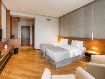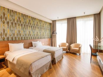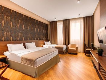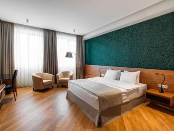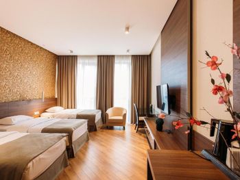 Номер абсолютно не соответствует фото на сайте бронирования . В первой предложенной комнате было как в тюрьме- одно, очень очень маленькое окно , в него практически не пробивался свет , потом мы настояли поменять комнату , в других окна были чуть больше , но все равно дневного света было очень и очень мало . В ванной комнате были далеко не все душевые пренадлежности . Полотенца в ужасном состоянии. Отвратительные завтраки , и отказаться от них нельзя . Всего два лиф а на все огромное здание , приходилось 5-7 минут ждать лифт . Бассейн не работает . Отсутствовали комнатные тапочки . Отель абсолютно не соответствует 4м звёздам. Во втором номере было сломано окно , из него дуло и свистело , ночью спать невозможно , как на улице