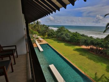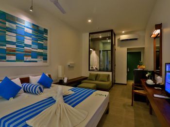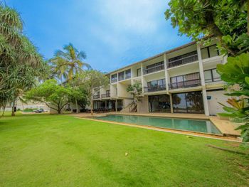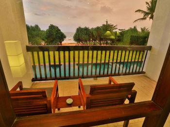 Расположен на прекрасном чистом пляже Индурува. В номерах очень чисто, убирают качественно каждый день и даже все постельное и полотенца меняют каждый день. Лежаки с матрасами и пляжные полотенца свободно хоть у моря, хоть у бассейна. Смотрители приносят матрасы и пляжные полотенца, запоминают гостей и уже готовят с утра места. Спокойно можно заказать коктель и наслаждаться им на побережье. Из дополнительных услуг - массаж (40$) и кальян. И самая изюминка - зелёный английский газон между бассейном и пляжем. Бассейн - потрясающий - теплый и чистый. Вид из окна шикарный. Нам все понравилось. Единственное, белки и вороны могут своровать у вас бекон, пока вы идете за соком. Но это не страшно) Принесёте себе ещё. А белки едят прямо с руке.