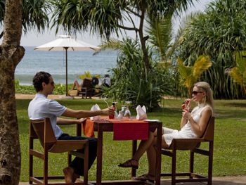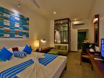 Океан прекрасен. Все номера с видом на море!!! Персонал безупречен. Приятные волны, можно и поплавать и попрыгать по волнам. Территория большая, много зелени, очень ухоженная, и много тенистых мест. Чистый бассейн. Чистый пляж, не многолюдный. Хороший шведский стол на завтрак и ужин. Вечером живая музыка. Пользовались услугами SPA, понравился Ayurvedic массаж с маслами.