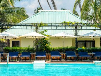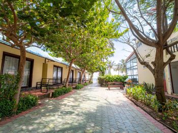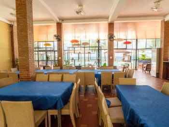 Номера старые, убитые, нуждаются в ремонте, убираются в номерах плохо, персонал равнодушный, возле шезлонгов (большинство из которых сломаны, и которые приходится занимать рано утром) нет зонтиков, завтраки очень скудные. Пляж грязный из-за отливов и ракушечника. Взяли номер с полупансионом, так поняли, что зря выбросили деньги - есть этот обед невозможно. Походили дня три на обеды и бросили, деньги, естественно, потеряли.