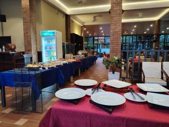 Расположение отеля очень хорошее, рядом много кафе и магазинов, палаток с фруктами по очень доступными ценами, дешевле, чем в центральной части. Море спокойное в любое время дня, заход в море плавный, пляжная линия достаточно широкая, есть, где прогуляться и полежать, правда, не на шезлонгах - они стоят только возле бассейна. По соседству на пляже местные готовят морепродукты - много, сытно, вкусно и не дорого.