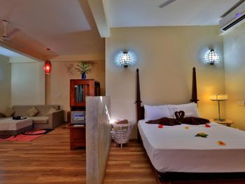 в букинге балкон указан. балкона не было. на мои слова где балкон, ответили - вот он и показали тамбур. кофемашины нет. соки половина свежие. половина нет. завтрак скудный. шведский стол. обращю внимание отель дорогой. почти 7000 за ночь без скидки. ну и у нас был номер с крышей. часть ночи по крыше ходили тритоны. персонал навязчив. включили в счет мне массаж, долго разбирались. оказалось, они подумали, что я моя спутница его будет делать. насчет рыбы. сказали свежая. на самом деле это была замороженная рыба. неприятно. очень. ну и ризиновые кальмары. постель в номере поднята на 70 см. мы на нее с пьяну забирались. ну и последнее Рави клеем мою спутницу. это было совсем перебор.