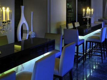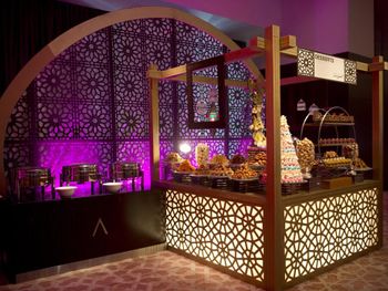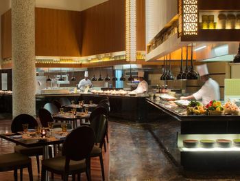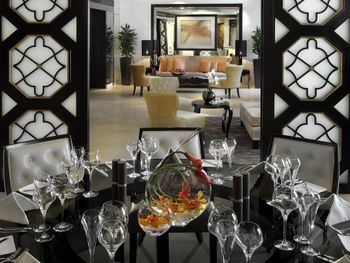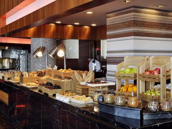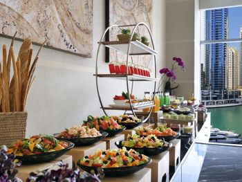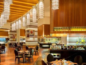 Доставка еды и напитков в номер осуществляется круглосуточно. В течение всего дня в ресторане Mazina с видом на пристань для яхт подают разнообразные блюда азиатской, арабской и европейской кухни. В спортивном ресторане Nezesaussi Grill сервируют фирменные блюда трех стран и различные сорта пива в бутылках. В вечернее время гости могут посетить ресторан Shades с открытой террасой, обустроенной вокруг панорамного бассейна. Здесь предлагаются инновационные блюда различных кухонь мира: от средиземноморской до дальневосточной.