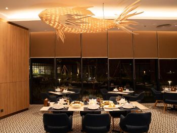Гостям подают завтрак «шведский стол», завтрак по меню или континентальный завтрак. При The Empyrean Cam Ranh Beach Resort работает ресторан, где подают блюда американской кухни, блюда китайской кухни и блюда итальянской кухни. Гости могут попросить приготовить вегетарианские блюда.