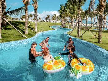 Не понравилось, что ленивая река работает только в пятницу и субботу, а мы выбирали отель, в том числе из за неё. И крайне разочаровало, что при выезде с нас запросили 110 000 донгов за 2 бутылки кока колы. Оказалось, это не комплимент был. Как то не серьёзно, для отеля 5 звезд портить все впечатление и настроение. Также полотенца пляжные платные.