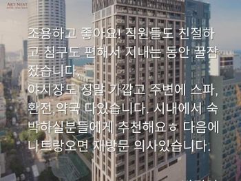 Art Nest Hotel Nha Trang — это отель в городе Нячанг, в 700 м от такой достопримечательности, как Пляж Нячанга. Среди удобств — открытый бассейн, фитнес-центр, терраса и частная парковка. К услугам гостей бар, а также ресторан, где подают блюда местной кухни. Гости могут обратиться к сотрудникам круглосуточной стойки регистрации, воспользоваться трансфером от/до аэропорта или доставкой еды и напитков, а также подключиться к бесплатному Wi-Fi.