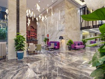 Отель красивый, новый, хорошее расположение , персонал очень доброжелательный, ресторан для завтрака просторный, есть повар или шеф- повар всегда улыбчивый и весь светится от улыбки- приятно . холл на 1 этаже просторный, красивый. Юлии очень благодарны, все расскажет, покажет. Очень отзывчивая и добрая девушка.