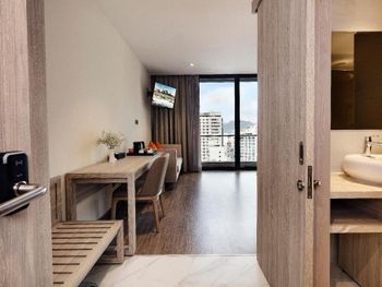 Отель новый, расположение отличное. Убираются чисто, каждый день. Вид на море боковой, но в этом тоже есть плюс - получается восхитительный вид и на море, и на горы. Балкон весь день в тени - очень удобно было бы сидеть с чаем или кофе, но нет стульев и столика. Весы в номере очень порадовали.