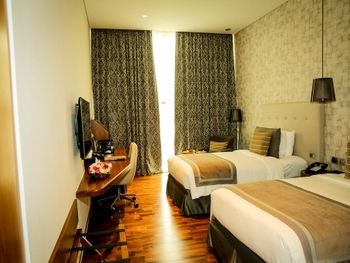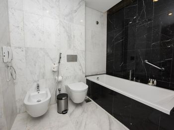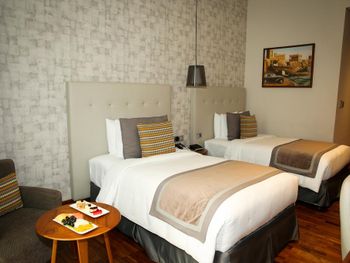 1. При бронировании указали что надо зарегистрироваться с 15 до 18. А у меня выставка в этот день до 21 часа. Пришлось заехать заранее за день и оплатить размещение. Принимали оплату наличными минут 15. 2. Когда мы с коллегой заехали то оказалось что номера Twin нет. Предложили Double :). Настоял, что это не вариант начали убирать Twin и все же заселили нас через некоторое время. 3. Номер старый и усталый. Много дерева, пол деревянный, скрипит, ночью не пройти тихо. Кондиционер шумный и невозможно сделать и комфортно и тихо. 4. Матрас ужасный пролёжанный, стыдно такой давать, можно спать только на половине кровати - на другой стороне горка. Подушки хорошие, белье нормальное. Полотенца иногда нормальные, иногда дешевые, после которых влажный остаешься. 5. В душе нет стопора двери - ее можно легко разбить, если открыть не аккуратно. Вода с пола не уходит, не хватает наклона, подскользнулся и чуть не упал. Набор одноразовых приборов нормальный. Полотенце для ног было не всегда, Полотенца для рук вообще нет, места где повесить полотенце после душа вообще нет... 6. Бассейн маленький, 2 лежака только, зачастую заняты. Вокруг грязно. 7. В субботу в 9 утра нам стучит уборщик и просит убрать номер. Мы легли поздно и не выспались, а тут еще разбудили. Ужас! В итоге попросил убрать позже и они решили вообще не убирать до вечера, пока не сходил на ресепшен и не попросил хотя бы принести воды в номер. 8. Есть кофемашина, но нет к ней капсул, возможно есть на ресепшене. 9. 2-3 раза за всё время срабатывала пожарная сигнализация стробоскопом, будит среди ночи яркими вспышками, длится 1-2 минуты, потом ее выключают. Видимо кто-то другой покурил в номере и весь отель просыпается. Первый раз довольно страшно было.