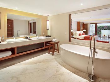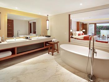 В числе стандартных удобств — кондиционер, телевизор с плоским экраном и гостиная зона. В некоторых номерах установлена гидромассажная ванна, а из окон открывается вид на сад или бассейн. В собственной ванной комнате имеются бесплатные туалетно-косметические принадлежности.