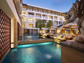 хороший современный отель, большие и комфортные номера, 2 бассейна, 2 бара, очень вкусный и разнообразный завтрак, вкусный ресторан при отеле, очень внимательный и дружелюбный персонал, который помогал в решении всех вопросов, хочется отметить менеджера Ani, очень красивый интерьер в балийском стиле