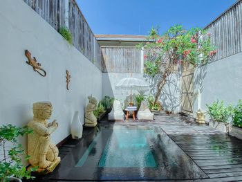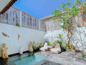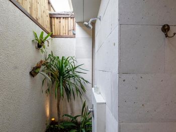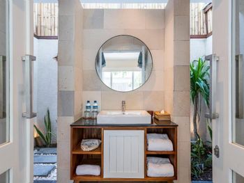 Рекомендуем владельцу поставить евро-двери, т.к. сейчас в номере две двери с большими щелями, пропускающими звук, а туалет выходит к бассейну вообще без двери (кстати, из-за чего лёжа в своём мини-бассейне вы можете слышать смыв соседнего туалета).