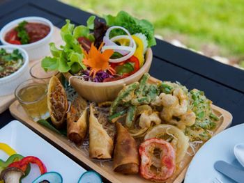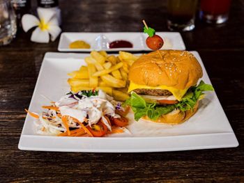 Guests are welcome to unwind and savor the tranquil beachfront ambiance at The Beach Club, located on Sam Roi Yod Beach and operating as part of the resort. It welcomes both resort guests and the general public daily, offering sunbeds, light snacks, and beverages for guests to enjoy.
