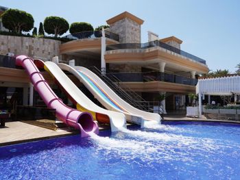 Возле бассейна есть кафешка где дают мороженое, фрукты, бургеры, пицца. Стоят отдельные холодильники с напитками.